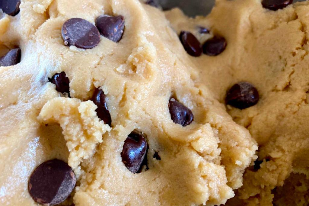 - Add in the chocolate chips and mix to distribute evenly into the dough