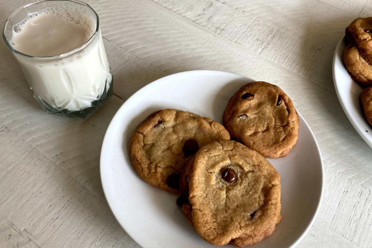 I paired my cookies with a tall cup of <a href="http://I always recommend non-GMO, organic ingredients wherever possible. Bonus points for locally-sourced Oatly oatmilk. Oatmilk is seriously my favorite now. I hope you enjoyed these delectable vegan chocolate chip cookies. Be sure to share your experiences baking these circles of wonder in the comments!